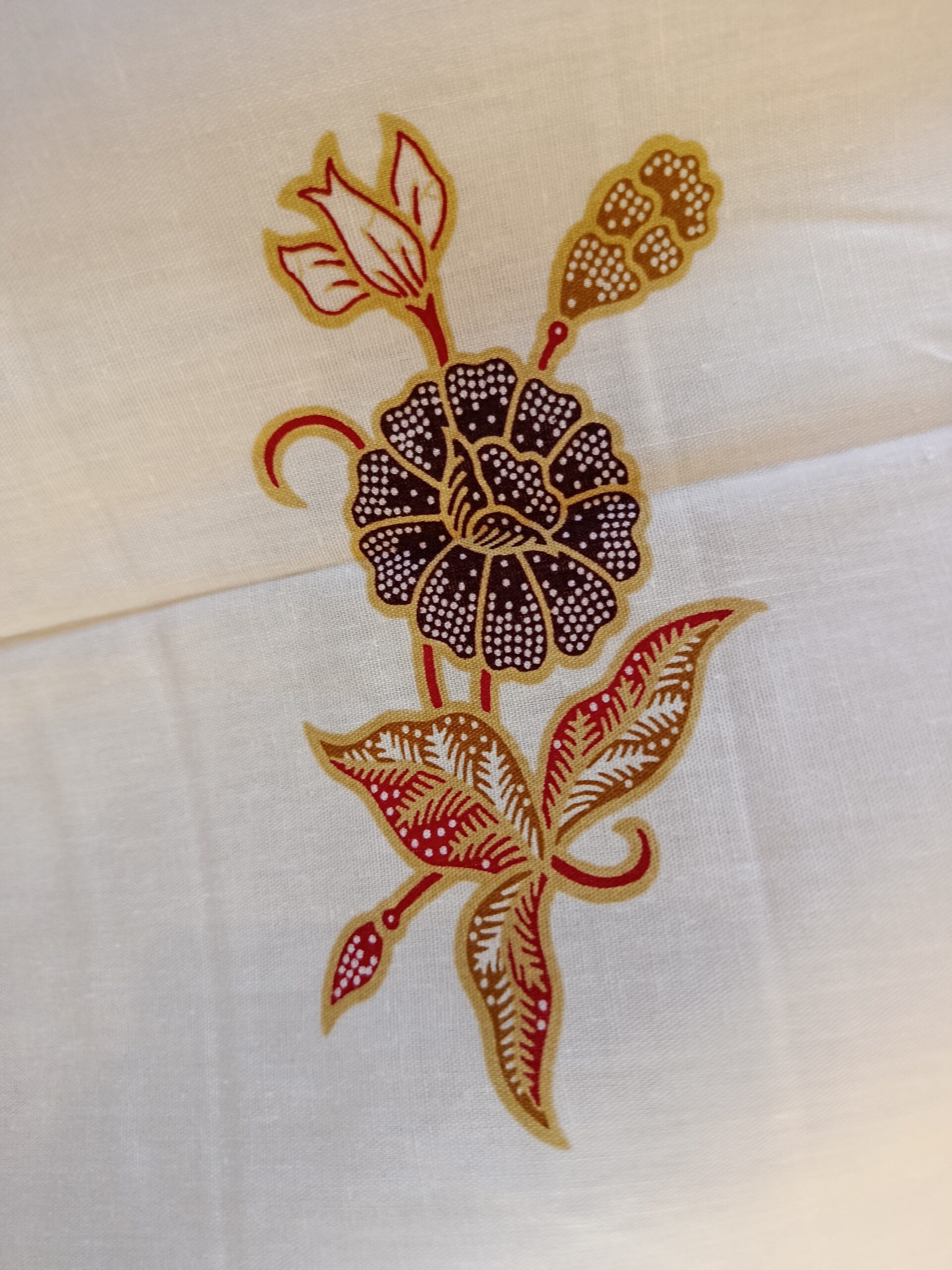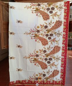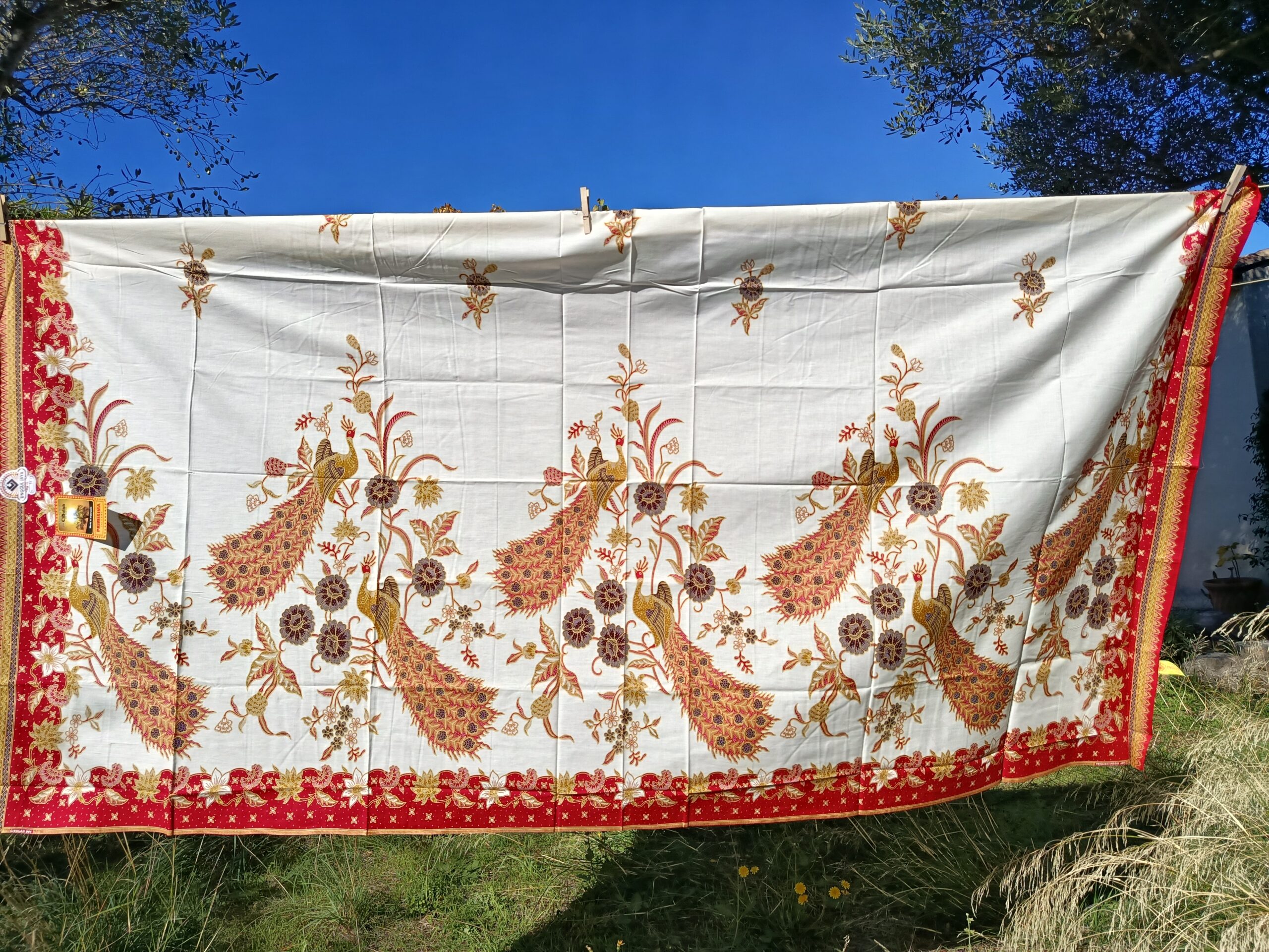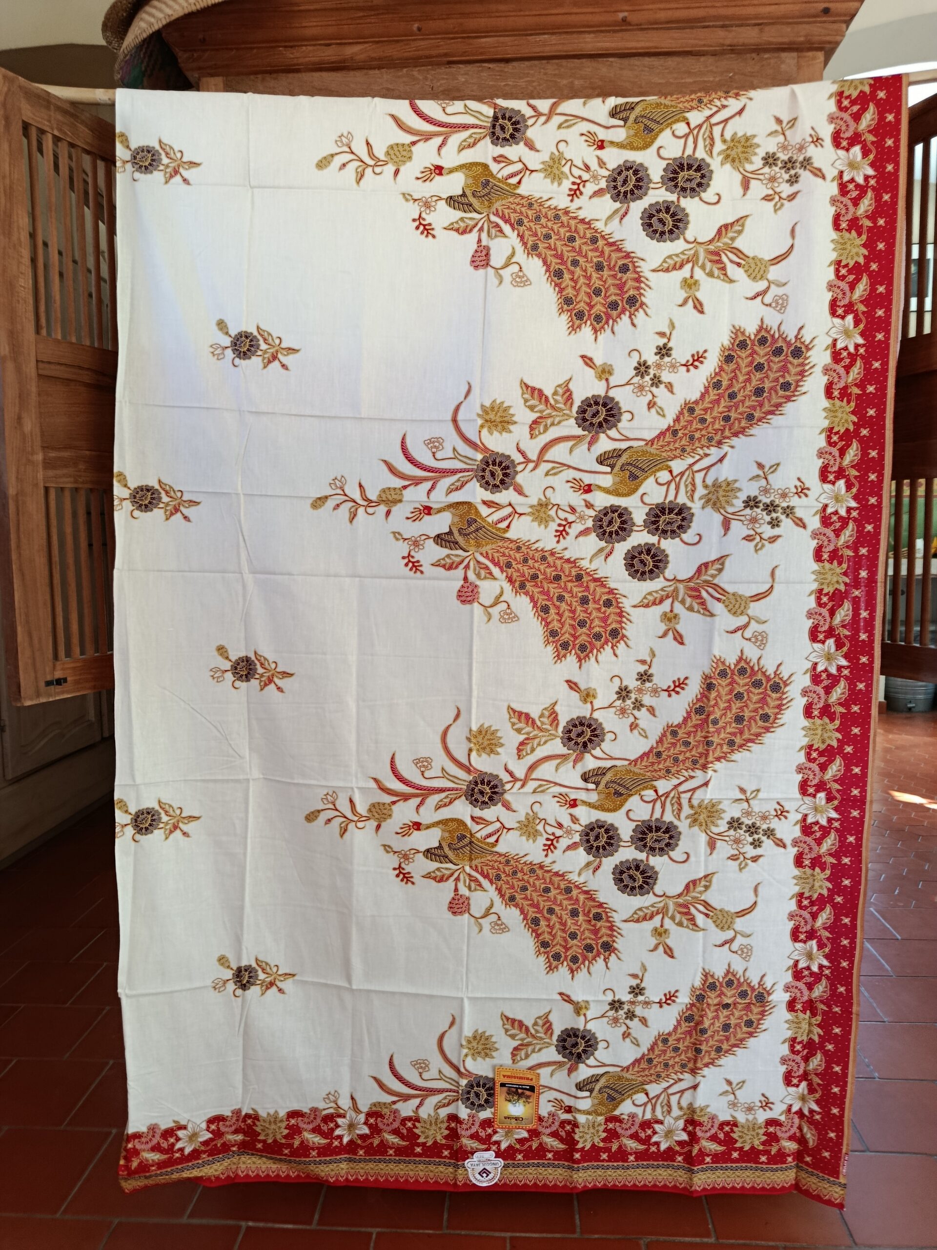 Coupon de coton imprimé dans le style du batik traditionnel, grands motifs de paons.
