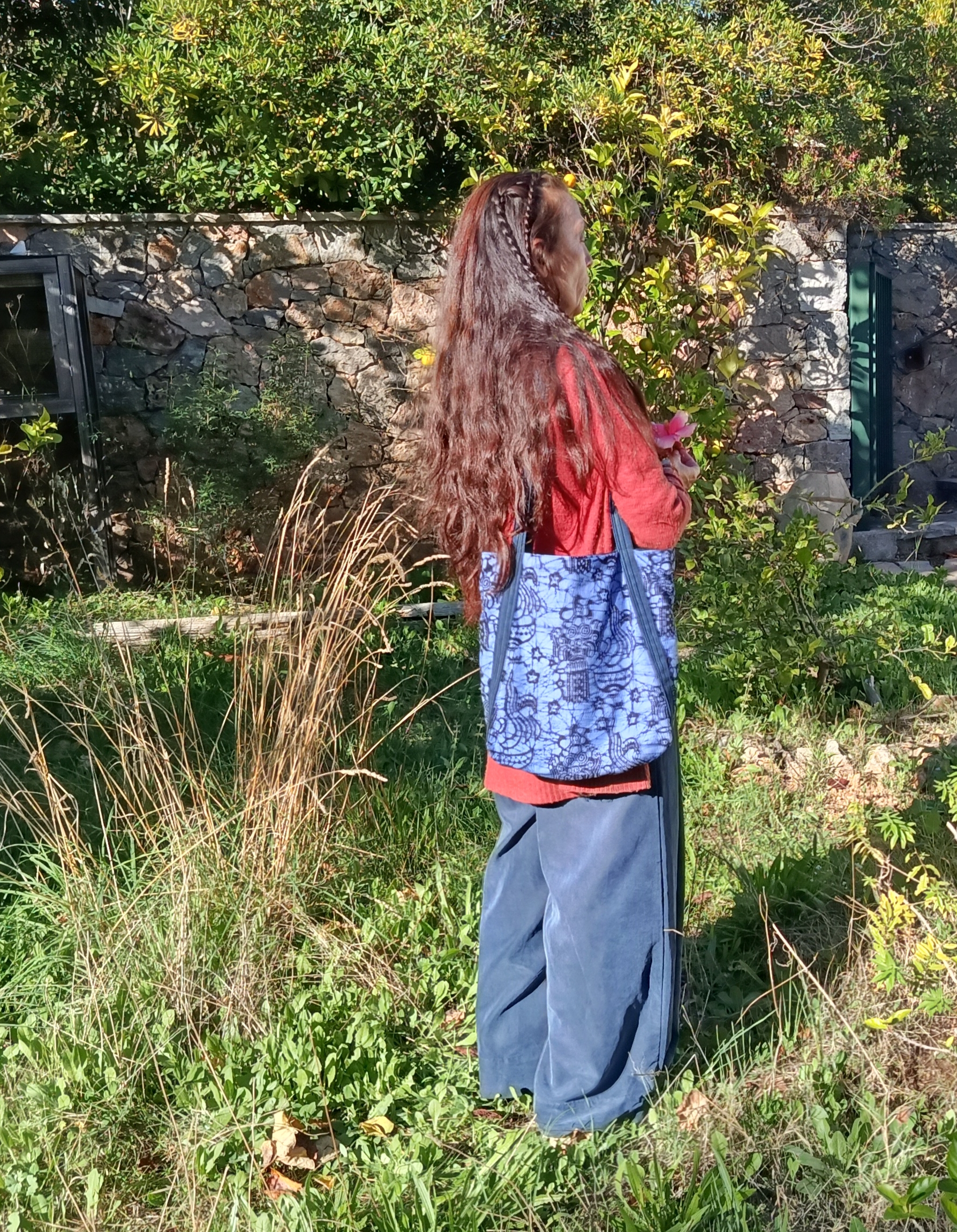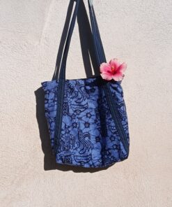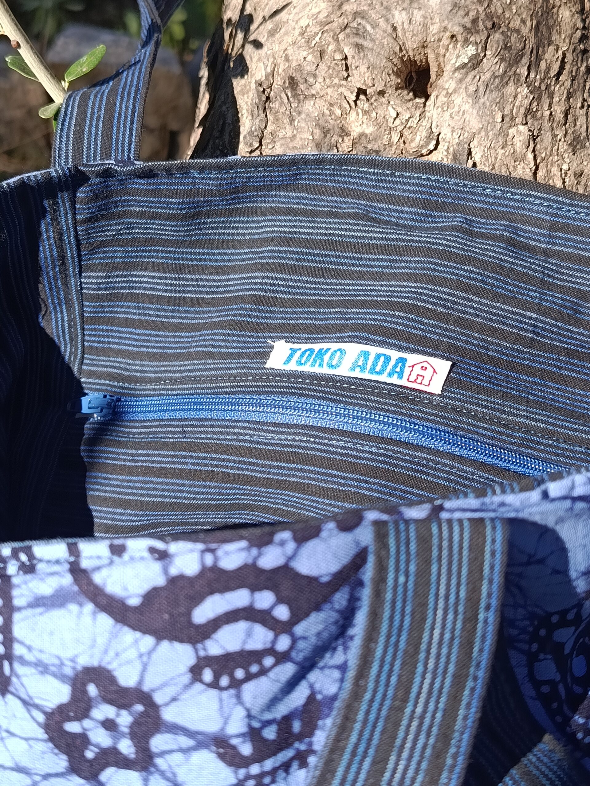 Sac en tissu batik au motif balinais. Anses et intérieur en Lurik (tissage traditionnel javanais).